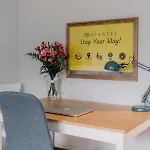 Vícekanálová televize, místnost na posezení a pracovní stůl jsou zahrnuty v každém pokoji. V pokojích jsou zahrnuty povlečení a hypoalergenní polštáře, a také fén a ručníky.